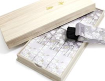 白檀を使用した優艶な桜の香りです。『淡墨の桜』のごとく、上品で美しいデザインのお線香です。