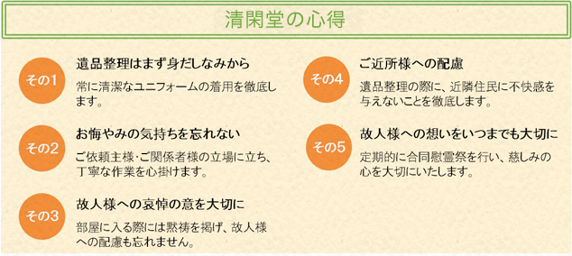 ●清閑堂の遺品整理サービス(5つのサービス品質)