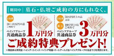 期間中、墓石・仏壇ご成約の方に最大3万円の商品券プレゼント!