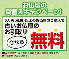 5万円以上のご購入で古いお仏壇のお引き取りが無料!